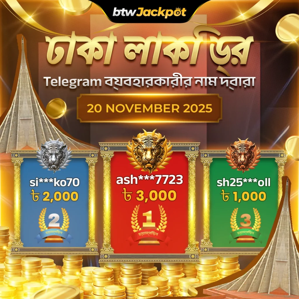 সম্পূর্ণ বিনামূল্যে খেলুন—কোন জমা নেই, কোন নিবন্ধন ফি নেই, কোন ঝুঁকি নেই! BTW Jackpot আপনাকে প্রতিদিন এক টাকাও খরচ না করেই আসল পুরস্কার জেতার সুযোগ দেয়। শুধু যোগদান করুন, ফলাফল দেখুন, এবং দেখুন আপনি ভাগ্যবান বিজয়ীদের একজন কিনা—১০০% বিনামূল্যে, সর্বদা!